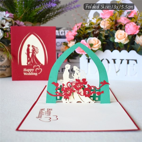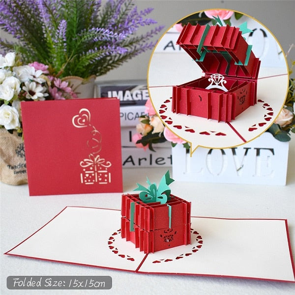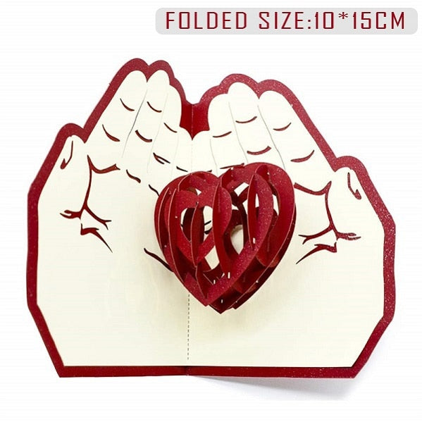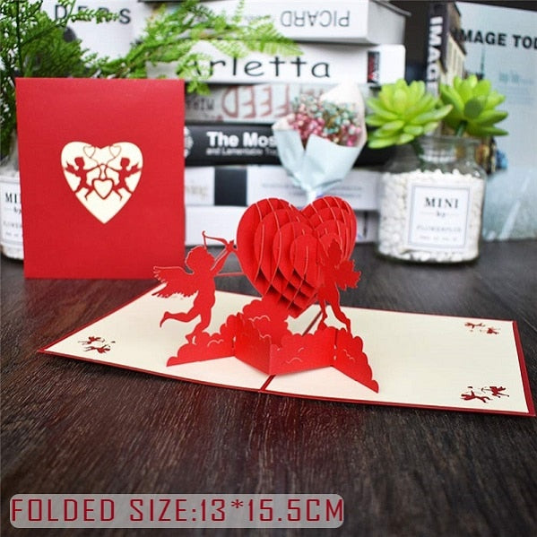 Love 3D Pop UP Cards Valentines Day Gift Postcard with Envelope Stickers Wedding Invitation Greeting Cards Anniversary for Her